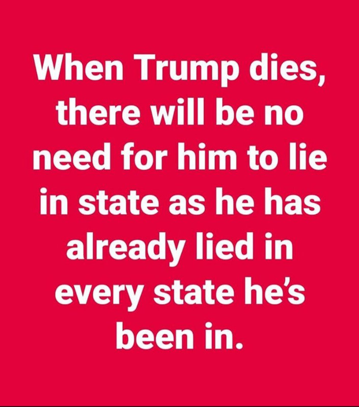 corrupt, worthless excuse for a human being is being accorded the honors, privileges, and deference that he is completely undeserving of. The extraordinary medical care (that he paid $750 for), the helicopters, the Presidential Suite at Walter Reed. I don't know why it's pissing me off so much. He's been coddled since January 20, 2017, but this is just too much. Probably because he thinks it's owed to him while millions of Americans are suffering and hundreds of thousands are dead because of his callous indifference and deliberate lies. And here we are treating him like a goddamned king. Arrgh...