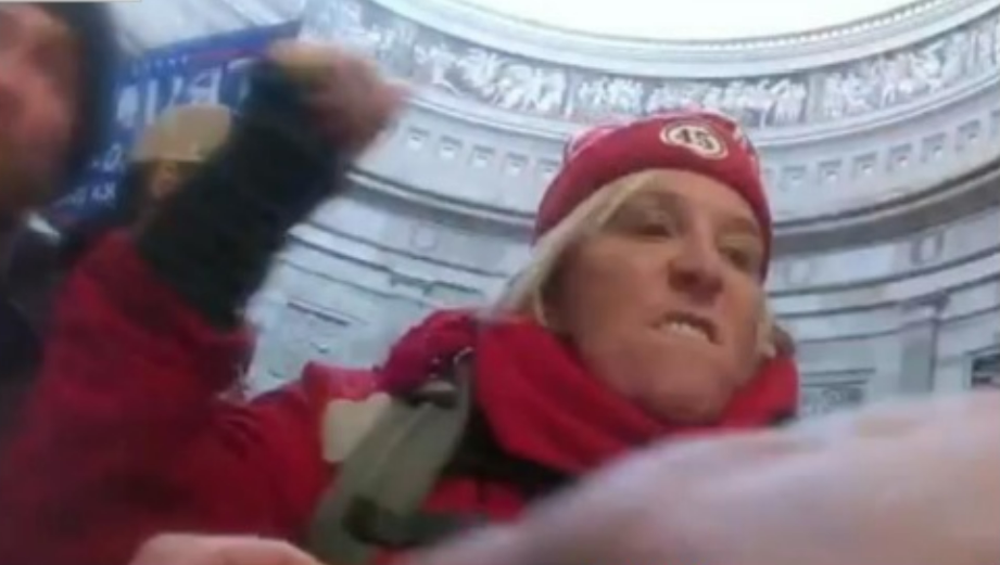 Footage shows Starer making contact with a Metropolitan Police Department officer just before 3 p.m. on the west side of the Capitol Rotunda and then striking the officer, the complaint states. The officer said in a later interview that "a blonde woman wearing a red jacket and hat punched her in the left side of her head," according to the complaint.