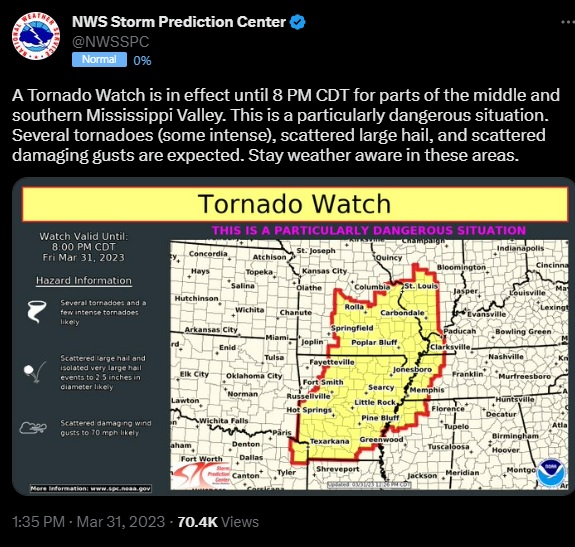 Two PDS (Particularly Dangerous Situation) Tornado Watches issued. Heads up IA/WI/IL/MO/AR (Original Post) catbyte Mar 2023 OP