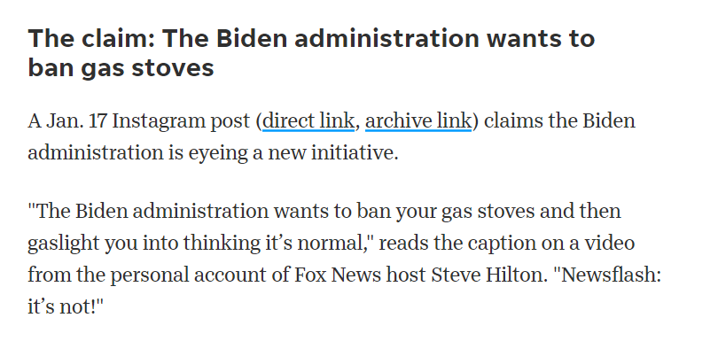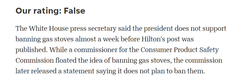 (52,458 posts)12. Fact check: False claim Biden administration wants to ban gas stoves