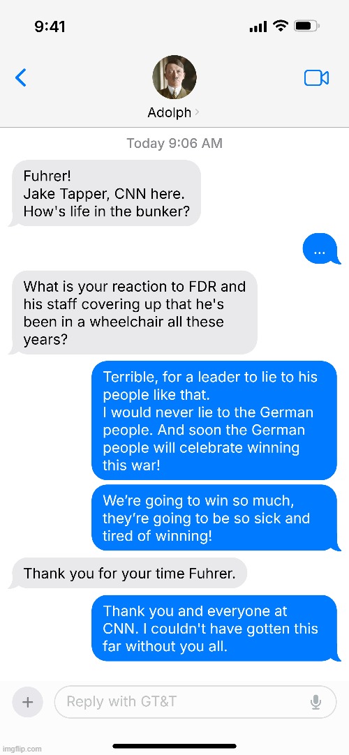 is that Trump would not end the text conversation with compliments to CNN. He would still call them "lying" and "failing" with low ratings.