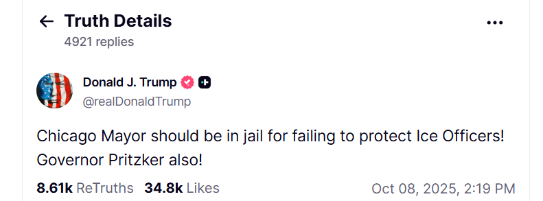 Trump Calls to Imprison Illinois Democrats as Troops Land in Chicago (Original Post)