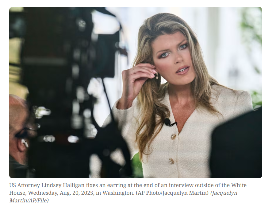 Trumpian Bimbo Stooge & Hack Lindsey Halligan needs to be (ASAP) disbarred, charged, convicted, and imprisoned.