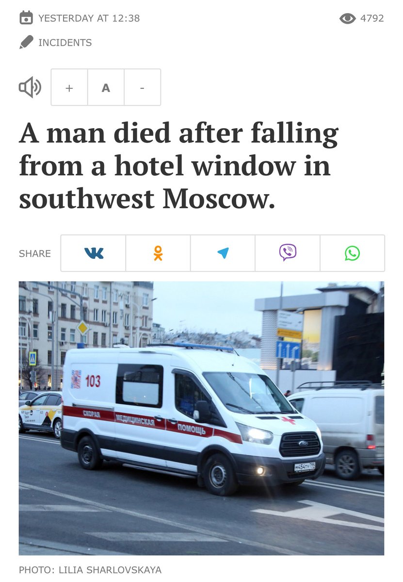 (171,747 posts)Putin is slipping. They should have found a window in a high story building for this person to "fall" out of