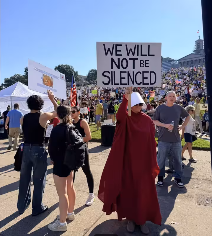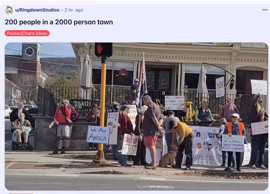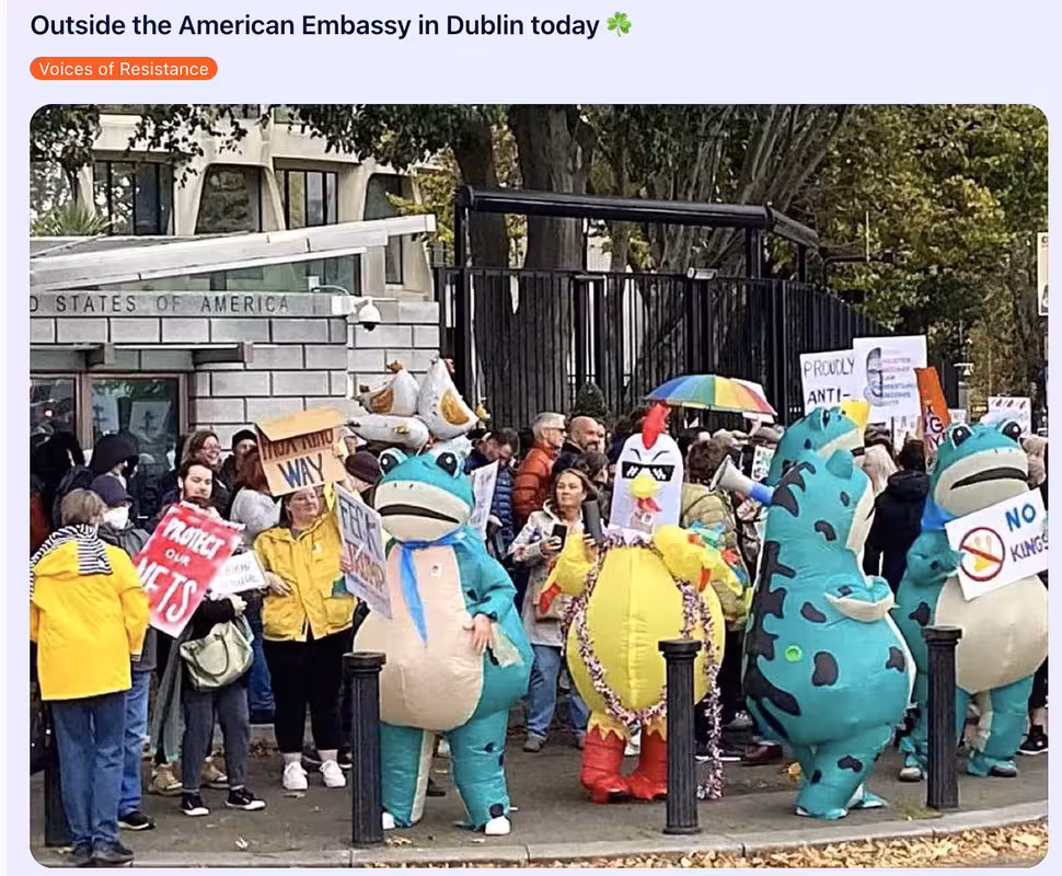 Few pics of No Kings Protests in Dublin, Ireland; Nashville; and a town of 2000 where 200 people protested