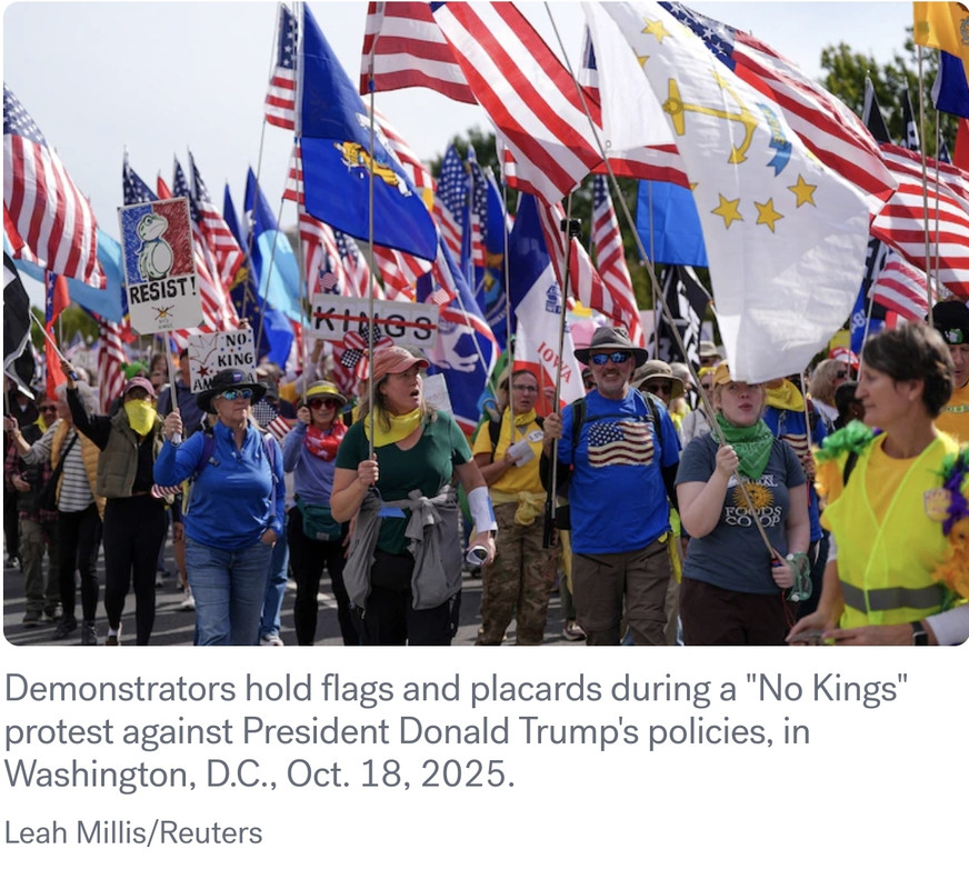 Streets filled across the country for 'No Kings' peaceful rallies protesting TrumpActivists and advocacy groups staged a second round of "No Kings" protests across the country on Saturday in response to what they call abuse of power by President Donald Trump and his administration, including his immigration crackdown and the sending of troops into American cities.