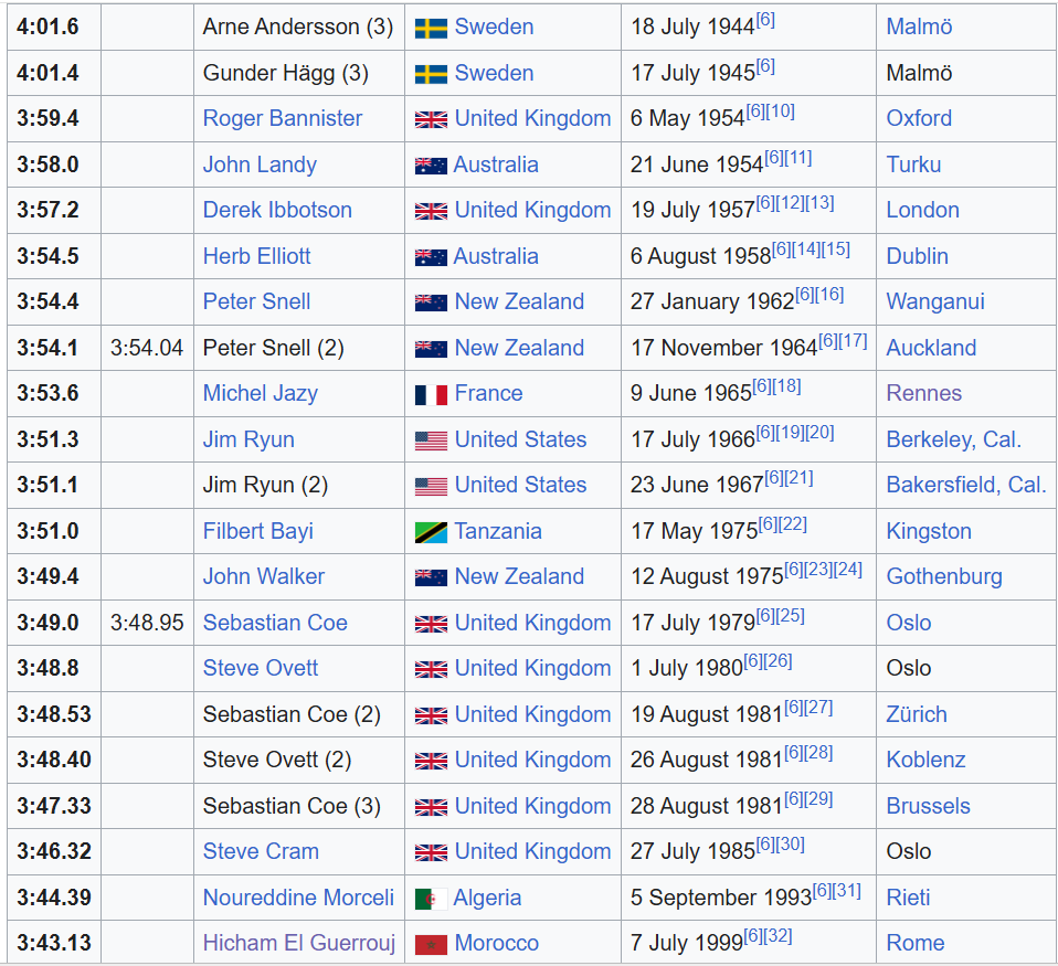 (52,717 posts)The world record for running a mile is 3:43.13, set in 1999.