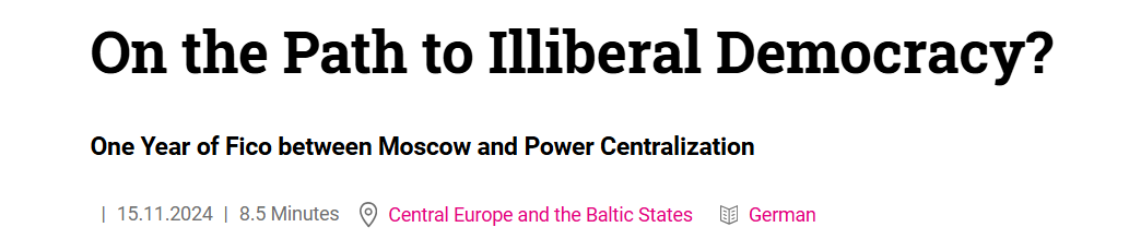 Following the snap parliamentary elections in September 2023, Robert Fico, the leader of the social-democratic, yet now strongly populist party SMER-SD (Direction Social Democracy), was appointed as prime minister for the fourth time (with interruptions). The ruling coalition consists of SMER-SD, HLAS-SD (Voice Social Democracy, the party of the current president Peter Pellegrini), and the SNS (Slovak National Party), which holds positions ranging from right-wing populist to far-right. Since his return, Slovak politics has been marked by dynamic yet polarizing developments, evoking associations for many observers with the pathways to illiberal democracy seen in Poland and Hungary though the speed and radicalism of reforms in Slovakia are unprecedented. Fico's increasingly authoritarian style of governance is particularly evident in his control over central institutions and a foreign policy heavily aligned with Russia and China, which has raised security concerns within the EU.