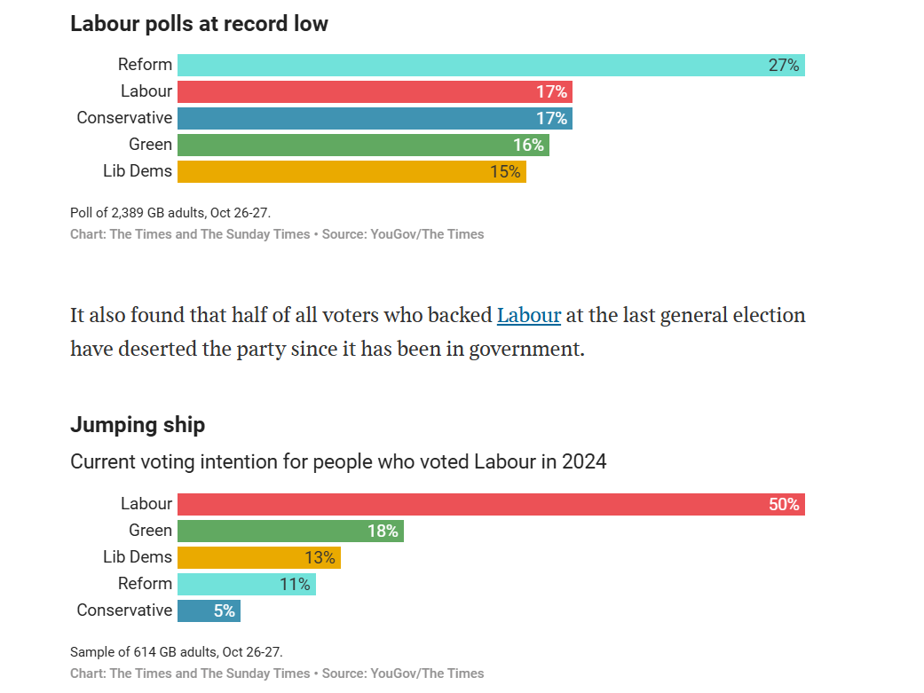 There are unsurprisingly deep rumblings within Labour to replace Starmer as Prime Minister, even before next year's council elections, when the incumbent party usually takes a spanking, and which will likely be catastrophic for Labour anyway.