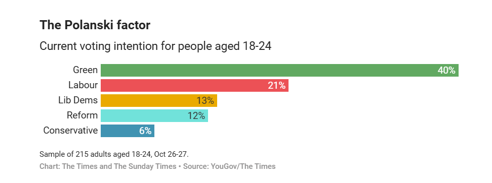 The poll finds that Labour, the Conservatives, the Greens and the Liberal Democrats are within two points of one another while Reform retains a significant lead with 27 per cent support. It will add to the concerns of Labour MPs after the partys humiliating defeat in the Caerphilly by-election last week where it was pushed into third place behind Plaid Cymru and Reform with 11 per cent of the vote.