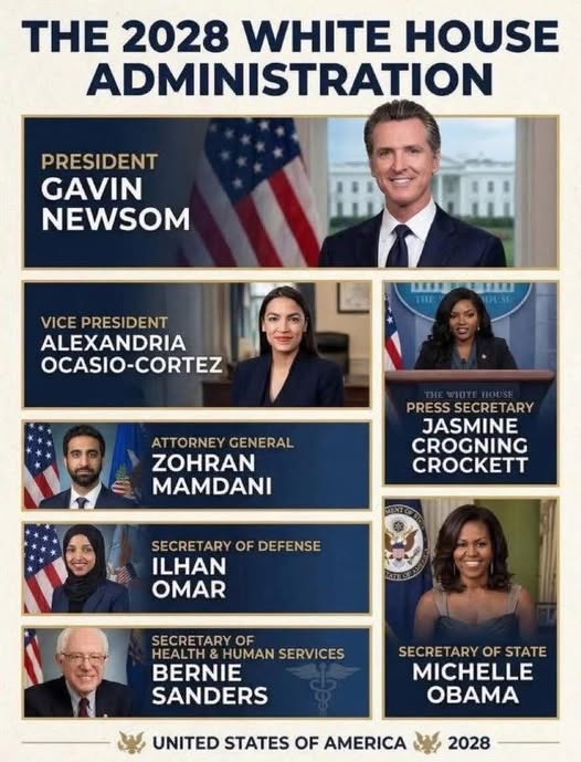 Frankly, I find this proposed 2028 [sic] executive branch membership meme I found on Facebook kind of weird,