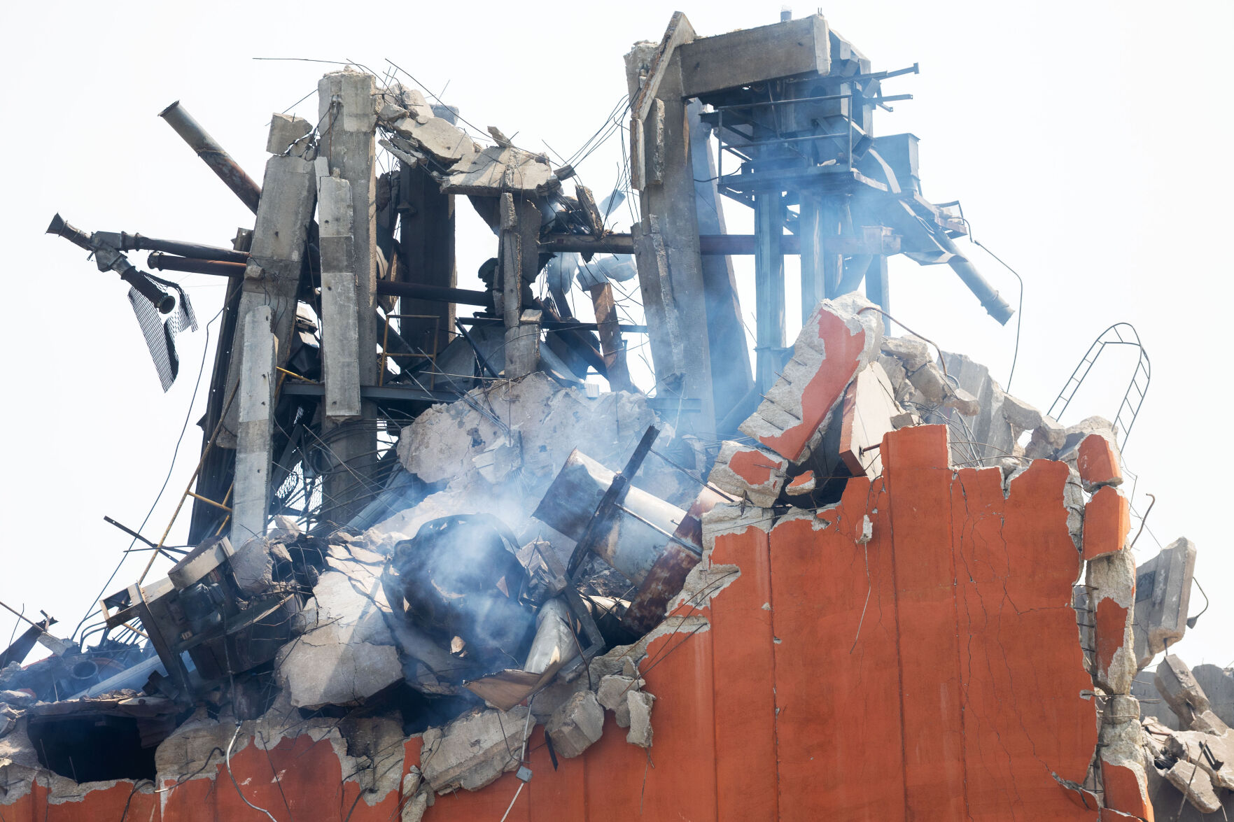 Smoke still emanates from the tower at the Horizon Biofuel plant two days after an explosion and fire killed three people in Fremont on Thursday, July 31, 2025.
