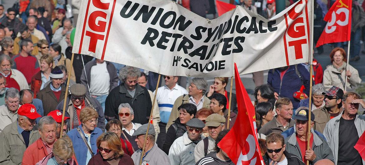 ILO/Marcel Crozet Trade union members France during a nationwide strike. (file)