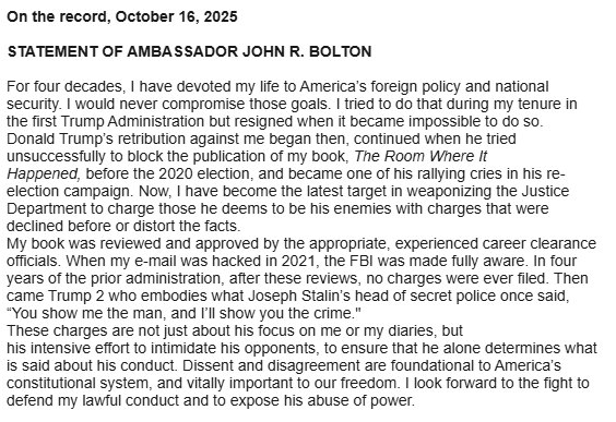 Read more: https://www.mediaite.com/crime/john-bolton-responds-to-indictment-vows-to-expose-trumps-abuse-of-power-i-look-forward-to-the-fight/