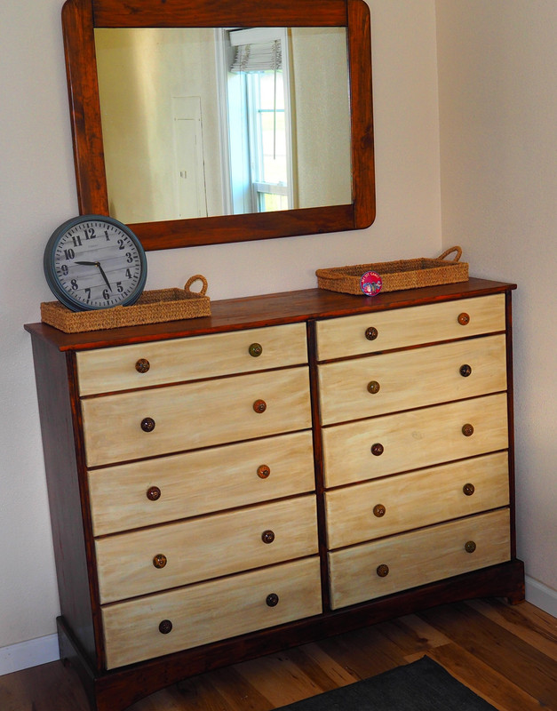 Laurie is amazing. Is there anything she cant do? I love the idea of using two colors of stain on the dresser. I think we have almost the same bookcases! Mr. Diamond was into refinishing many years ago.