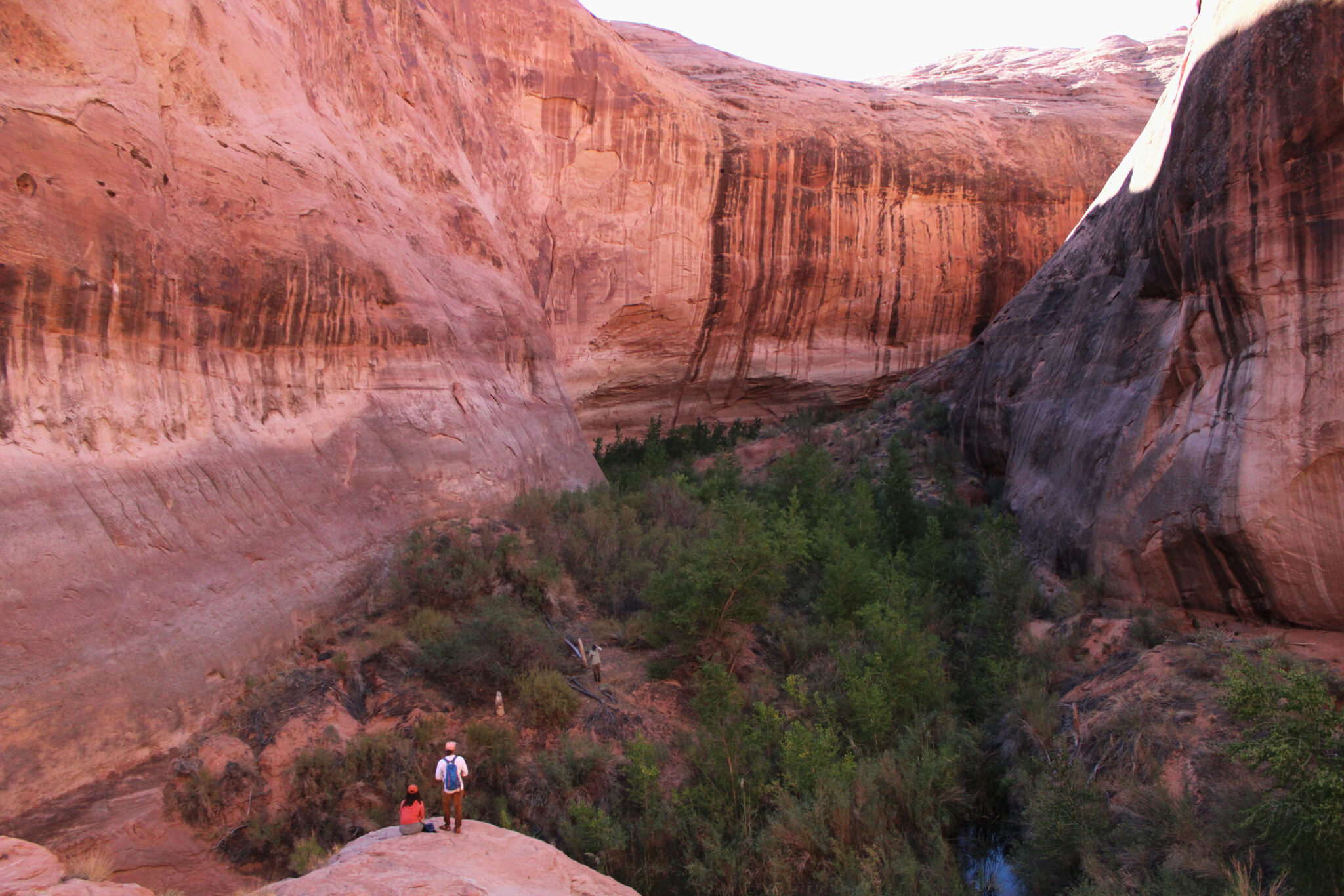 Employees of Glen Canyon Institute look out onto a section of Glen Canyon filled with vegetation on Sept. 16. Some portions of the canyon have been above water for more than two decades, allowing native species to return to areas that were once submerged by Lake Powell. Credit: Alex Hager/KUNC