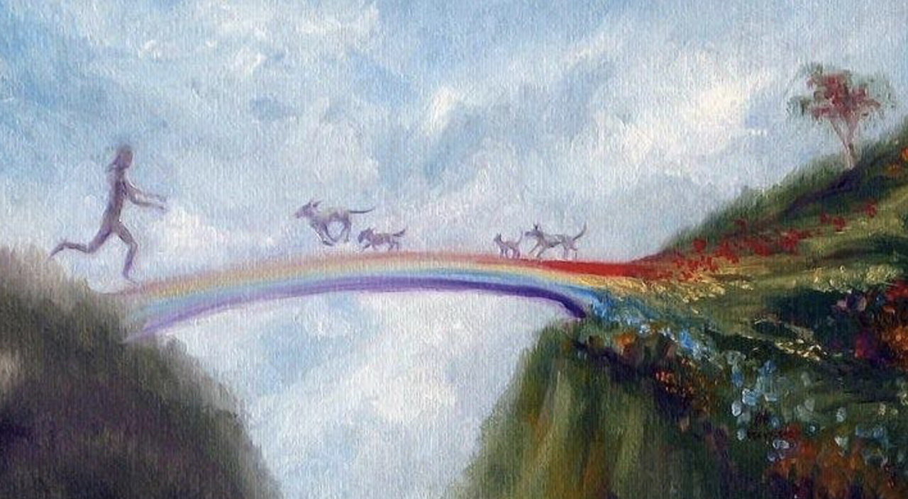 Just this side of heaven is a place called Rainbow Bridge. When an animal dies that has been especially close to someone here, that pet goes to Rainbow Bridge. There are meadows and hills for all of our special friends so they can run and play together. There is plenty of food, water and sunshine, and our friends are warm and comfortable. All the animals who had been ill and old are restored to health and vigor. Those who were hurt or maimed are made whole and strong again, just as we remember them in our dreams of days and times gone by. The animals are happy and content, except for one small thing; they each miss someone very special to them, who had to be left behind. They all run and play together, but the day comes when one suddenly stops and looks into the distance. Her bright eyes are intent. Her eager body quivers. Suddenly she begins to run from the group, flying over the green grass, her legs carrying her faster and faster. You have been spotted, and when you and your special friend finally meet, you cling together in joyous reunion, never to be parted again. The happy kisses rain upon your face; your hands again caress the beloved head, and you look once more into the trusting eyes of your pet, so long gone from your life but never absent from your heart. Then you cross Rainbow Bridge together ~