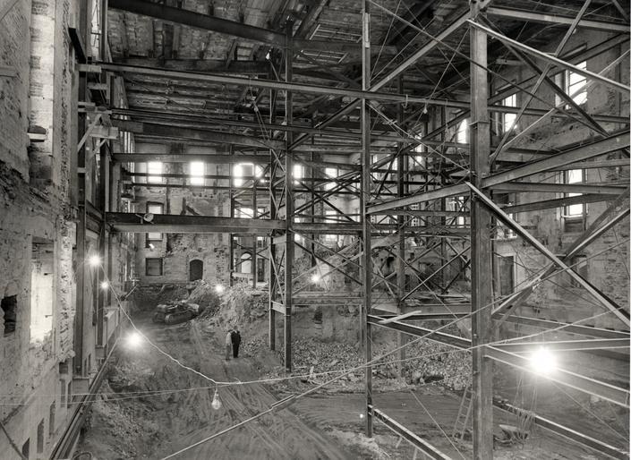 After the White House was gutted, ca. 1950. Iron beams support the outer walls, which were not replaced Abbie Rowe, National Park Service, Harry S. Truman Library & Museum
