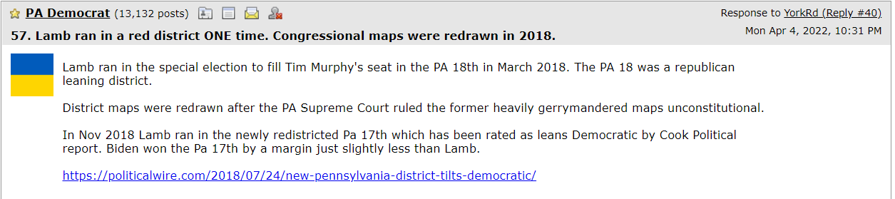 It is one district and he won it by 2 points...Lamb's own polls show that Fetterman would