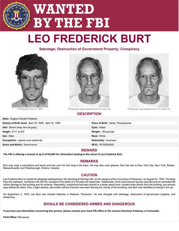 Leo Burt was placed on the FBI's most wanted list immediately after the 1970 bombing of Sterling Hall and remains the last fugitive sought by the FBI in connection with radical anti-Vietnam War activities.