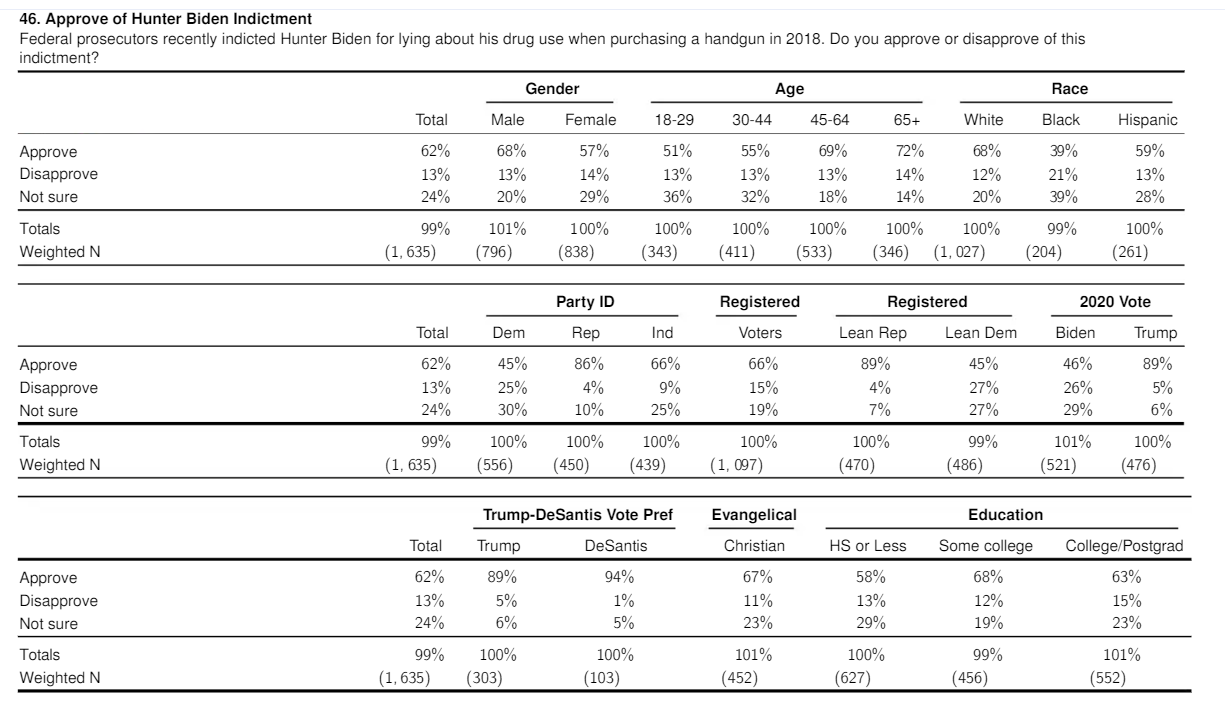 Only 64% think TFG's indictments are a big problem. Also, of interest, 54% think Trump sinkingfeeling Sep 2023 #12
