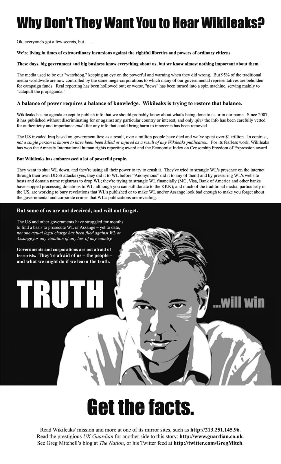Here's a FLYER You Can Distribute to Help Wikileaks: |