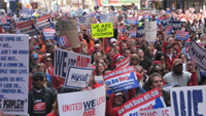 Workers from the public sector, private sector and building trades lined Seventh Avenue, starting at 42nd Street and stretching several blocks south, in a show of solidarity to deliver one simple message: "We Are One - Respect Our Rights."